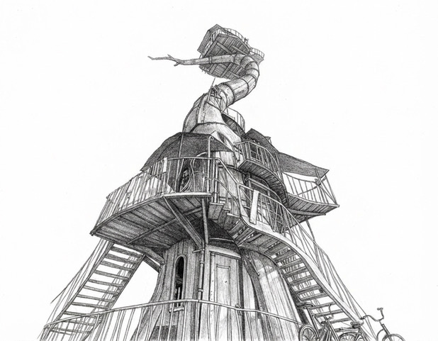 Above & Below draws from stories as old as the beanstalk and the house in the clouds, connecting memory, imagination, and invention. It reflects a belief that the spaces we build can hold meaning, and that structure itself can become a place of wonder, discovery, and shared experience. Part home, part machine, part dream, the work continues Sean Orlando’s exploration of large-scale immersive sculpture and story-driven environments designed to invite curiosity and connection.